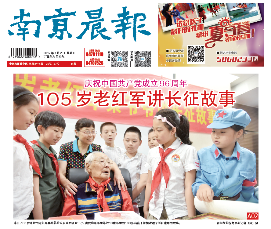 ——【南京晨報】頭版:105歲老紅軍講長征故事