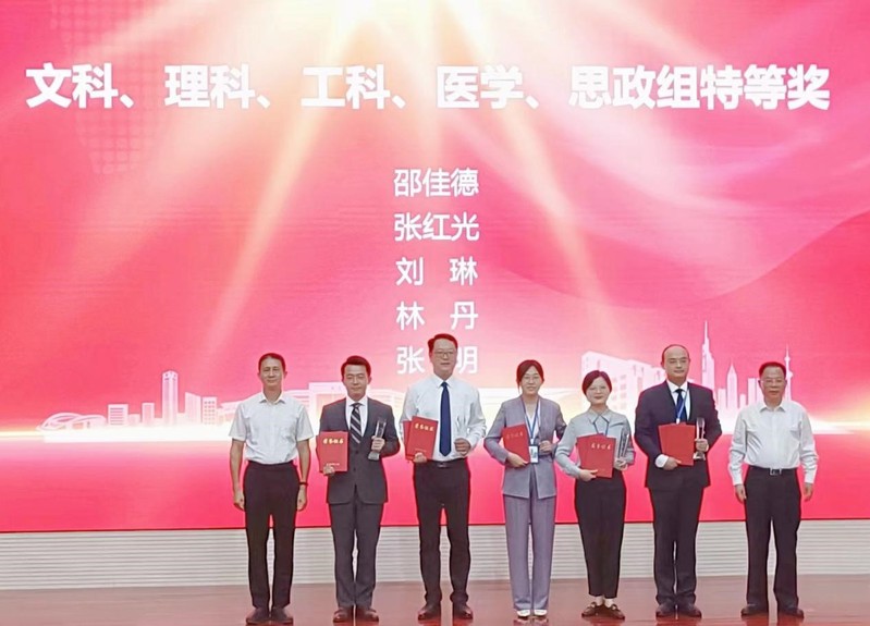 張紅光老師(左三)獲第四屆江蘇省本科高校青年教師教學競賽理科組第一名并獲特等獎