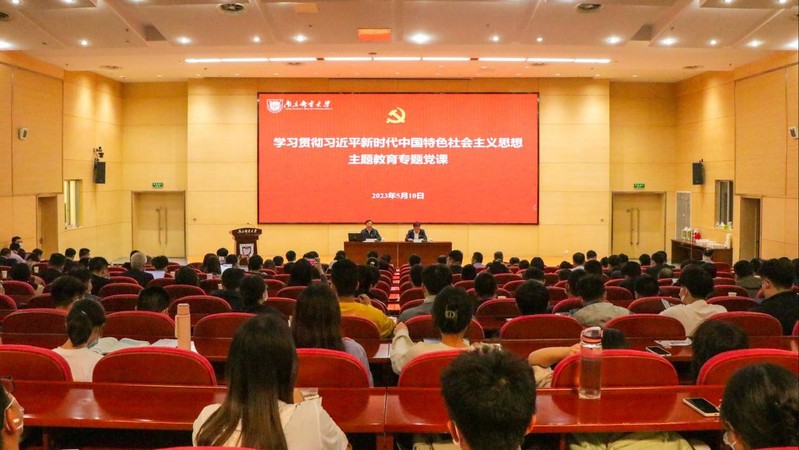 根據學習貫徹習近平新時代中國特色社會主義思想主題教育相關工作部署,5月10日下午,校黨委書記劉陳在仙林校區圖書館四樓報告廳,以《學好新思想,開拓新實踐,以主題教育持續推動學校高質量發展》為題講授主題教育專題黨課。省委第十七巡回指導組成員,省委組織部黨員教育中心一級主任科員閆偉同志到場指導。校黨政領導班子成員、全體中層干部和師生黨員代表參加黨課學習。校黨委常委、副校長蔣國平主持專題黨課。