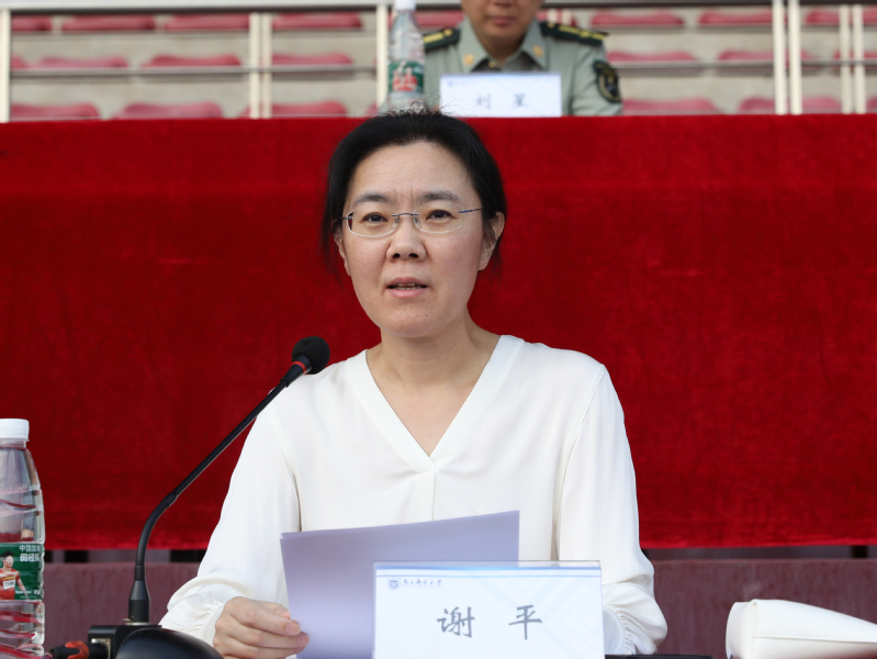 謝平副校長向軍訓旅授旗,并作軍訓動員講話。她強調,軍訓是接受國防教育、追求強國強軍夢的重要形式,是貫徹《中華人民共和國國防教育法》和《中華人民共和國兵役法》,落實全民國防的重要體現,也是全體大學生的一堂必修課。她希望新生們做胸懷家國、立志高遠的追夢者,做意志堅定、勤勉堅韌的奮斗者,做嚴于律己、胸襟寬廣的示范者。