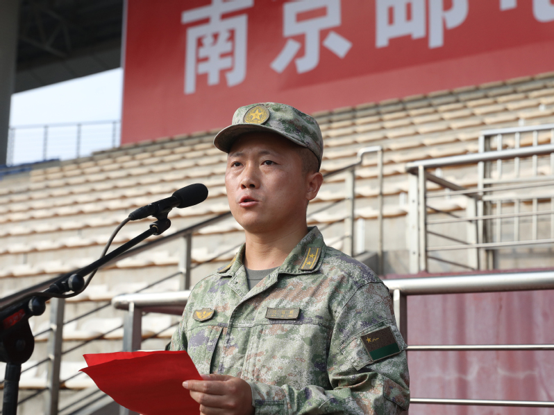 錢錦鵬副旅長作動員報告。他要求全體承訓教官作風要硬、標準要高、形象要好、自我管理要嚴,保證高質量完成軍訓任務。教官代表楊程林同志、新生代表陳科銘同學分別作表態發言,表達了堅決完成軍訓任務的信心與決心。