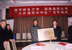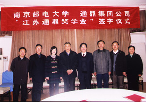 根據協議,通鼎集團公司在南京郵電大學設立總額為50萬元人民幣的“江蘇通鼎獎學金”,分五年(2005年—2009