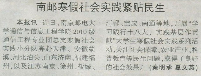 【江蘇科技報】南郵寒假社會實踐緊貼民生