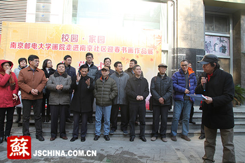 主辦方負責人翟優介紹,高校的藝術教師既承擔著教書育人的重任,同時也是文藝創作的重要力量,“我們要努力踐行習近平總書記“把為人民服務作為文藝工作者的天職。”的要求,這也是本次畫展舉辦之重要意旨。校園之外,社區和社會是我們更大的家園,是藝術的創作之源和價值所在。”因此,畫院特于2015年新年到來之際,于全國首家民辦社區文化藝術中心-南京金盞花文化藝術中心舉辦“校園·家園——南京郵電大學畫院走進南京社區迎春書畫作品展”,面向社會,面向大眾,弘揚真善美,傳播正能量,為實現中國夢的江蘇篇章做出積極的貢獻。