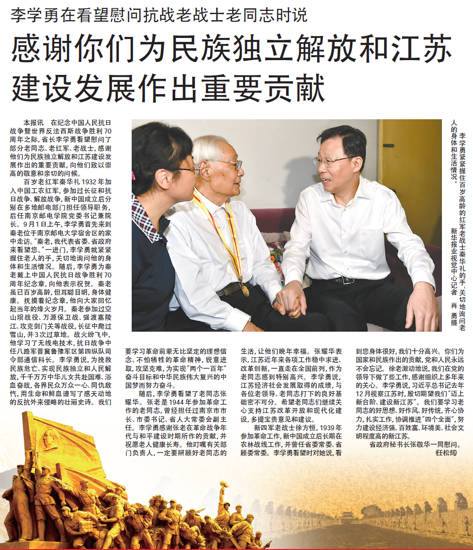【新華日報】感謝你們為民族獨立解放和江蘇建設發展作出重要貢獻