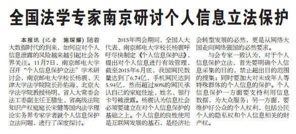 【江蘇法制報】全國法學專家南京研討個人信息立法保護