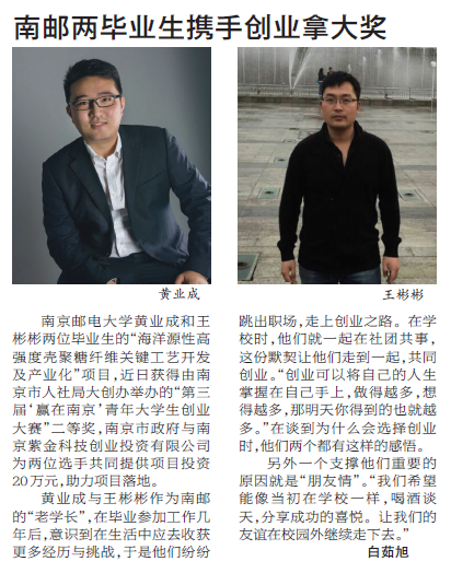 【揚子晚報】南郵兩畢業生攜手創業拿大獎