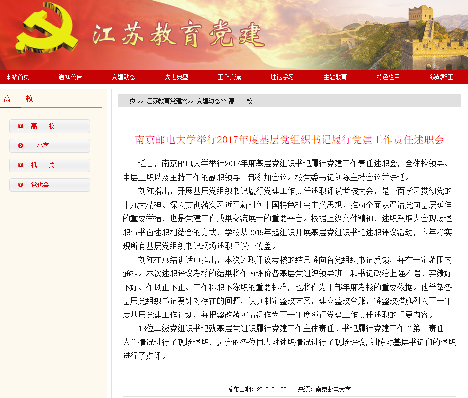 【江蘇教育黨建】南京郵電大學舉行2017年度基層黨組織書記履行黨建工作責任述職會