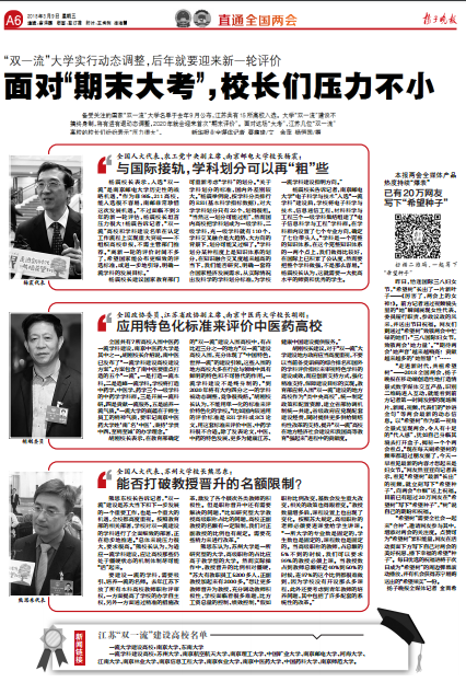 要建設(shè)一流的學(xué)科,需要吸引、培養(yǎng)一流的名師。去年江蘇下放了所有本科高校教師職稱評審權(quán),一方面提高了學(xué)校的辦學(xué)自主權(quán),另外一方面通過精準的措施改革,激發(fā)了各個層次各類教師的積極性。但是職稱晉升中還有需要解決的問題,“比如研究型大學(xué)教授高級職稱占比的問題,高校正副教授的名額有一定限制,我們對正副教授的比例也有規(guī)定。需要花些精力來進行改革。”