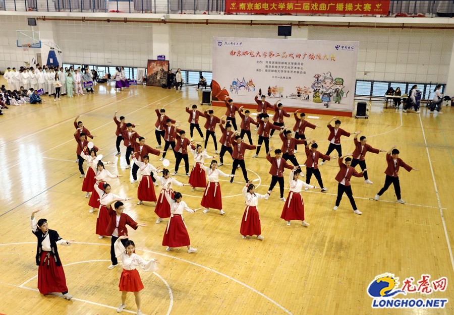 龍虎網訊(通訊員 李心電 記者 杭程)腕花小云手、踢抬腿、亮相、拉山膀、涮腰、飛天十三響……當中國戲曲的唱念做打、手眼身法牽手廣播操,立刻顯示出獨有的“中國味”。而當戲曲廣播操牽手南郵學子,又會有什么別樣精彩呢?3月27日,南京郵電大學第二屆戲曲廣播操比賽上演,比賽中融入的郵差、機器人、無人機、測繪工具、win開機、編程、超級瑪麗等學校專業特色元素,無不在朝氣蓬勃的學子們的演繹下,詮釋出了優秀傳統文化的時代氣息和“南郵”韻味。