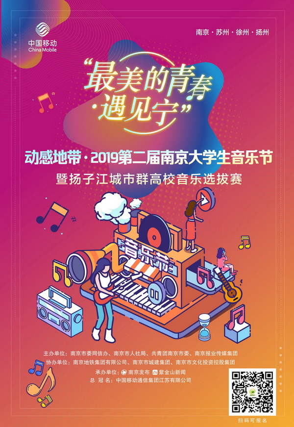“最美的青春·遇見寧”動感地帶·2019第二屆南京大學生音樂節暨揚子江城市群高校音樂選拔賽將正式開唱。