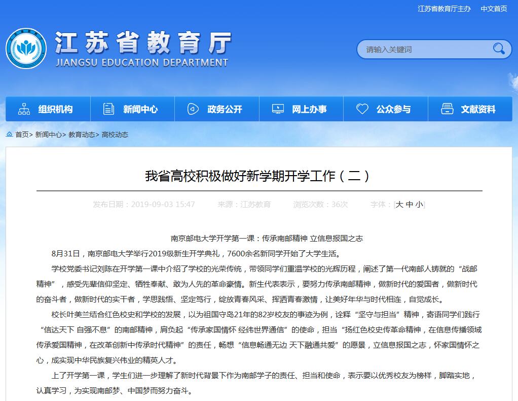 【江蘇教育】南京郵電大學開學第一課:傳承南郵精神 立信息報國之志