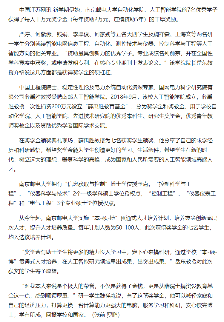 【中國江蘇網】南郵院士設基金 人均十萬元獎勵“人工智能”優秀學子