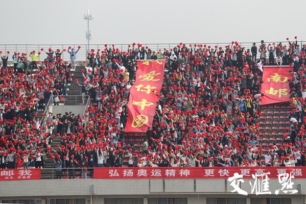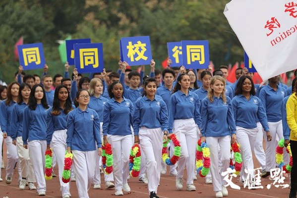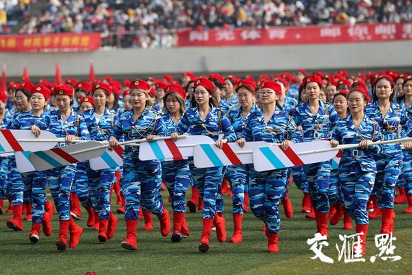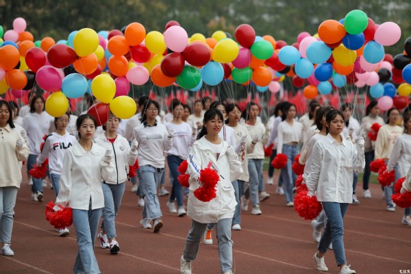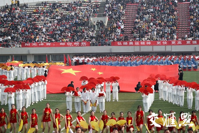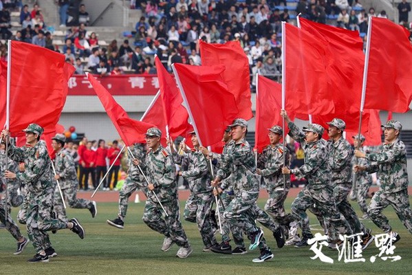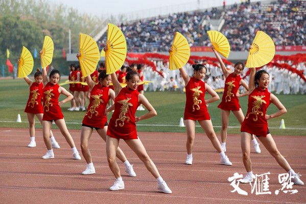 2019年10月25日,南京郵電大學舉行第五十屆田徑運動會,學生們輪番展示龍獅表演《盛世華章——新時代》、健身舞《光芒》、啦啦操《青春贊歌》、團體操《紅旗飄揚》、《我和我的祖國》等節目,現場涌動著濃濃的愛國情。交匯點記者陳儼攝