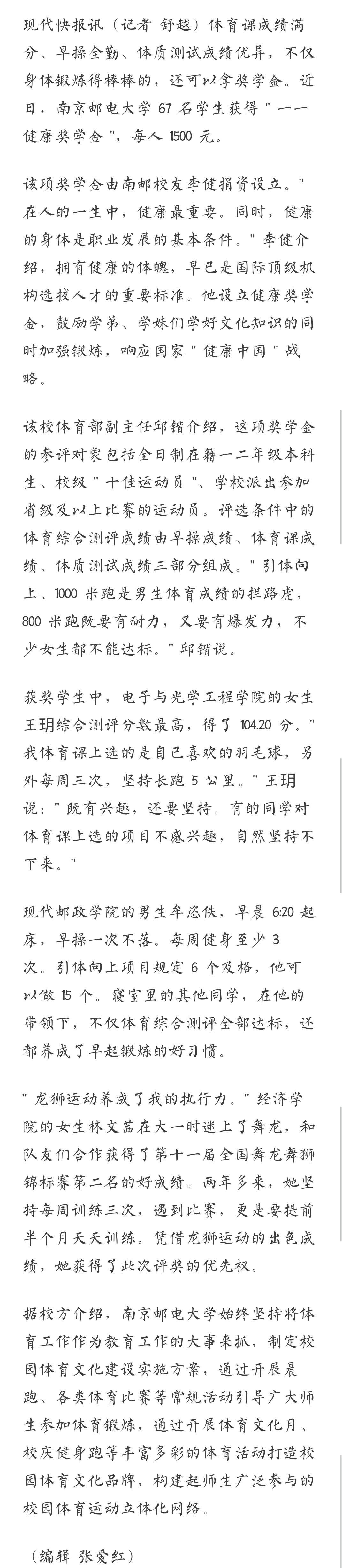 【現代快報全媒體】體育好也能拿獎學金!江蘇一高校獎勵67名學生每人1500元