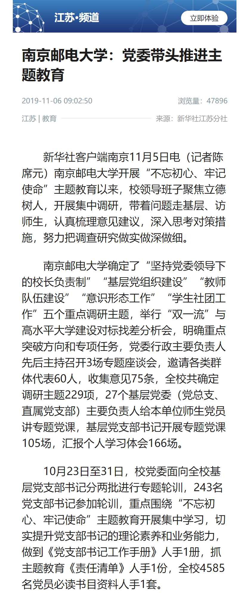 【新華社客戶端】南京郵電大學(xué):黨委帶頭推進主題教育