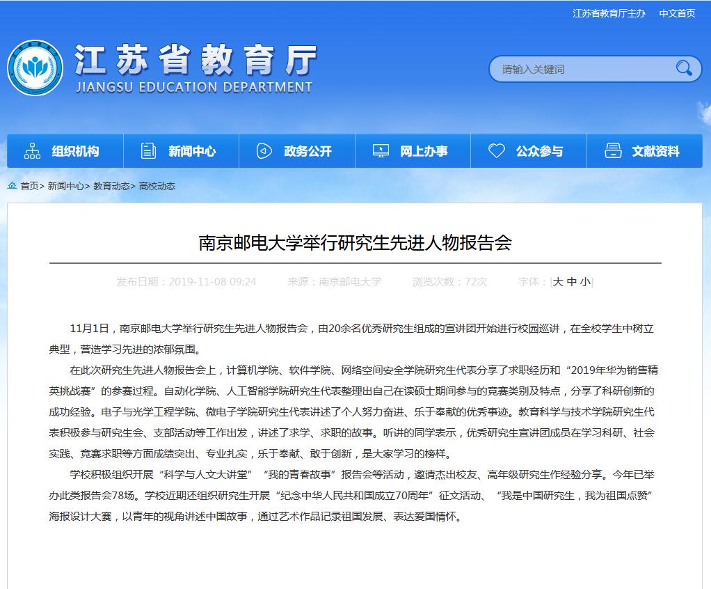【江蘇教育】南京郵電大學(xué)舉行研究生先進(jìn)人物報(bào)告會(huì)