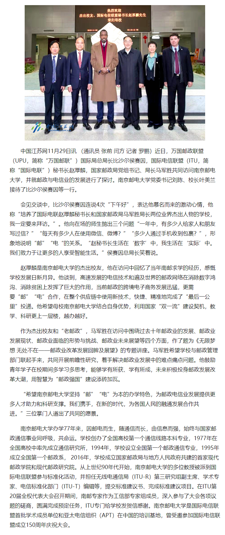 【中國江蘇網】國際國內郵政、電信業(yè)齊聚南郵共話合作發(fā)展