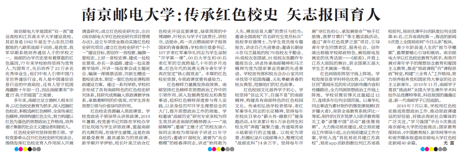 【新華日報】南京郵電大學:傳承紅色校史矢志報國育人