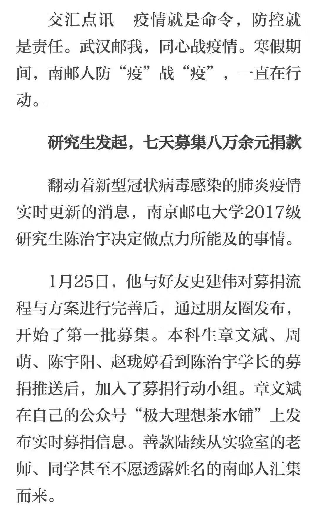 【交匯點】7天募集8萬余元、進口罩生產企業……南郵師生防“疫”戰“疫”在行動