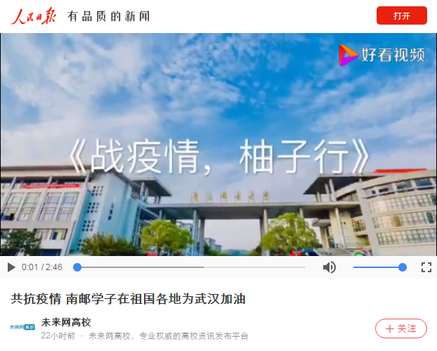 【人民日?qǐng)?bào)客戶端】共抗疫情 南郵學(xué)子在祖國(guó)各地為武漢加油