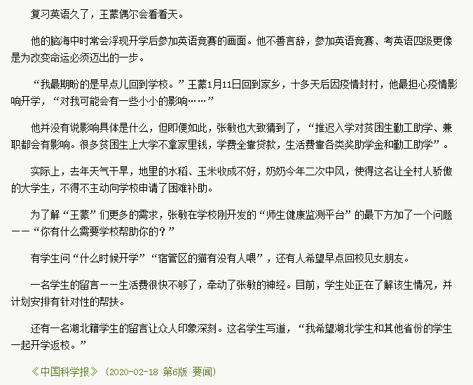 發布時間:2020-02-18 瀏覽次數:2667 文章來源:2020年2月18日《中國科學報》第6版頭條