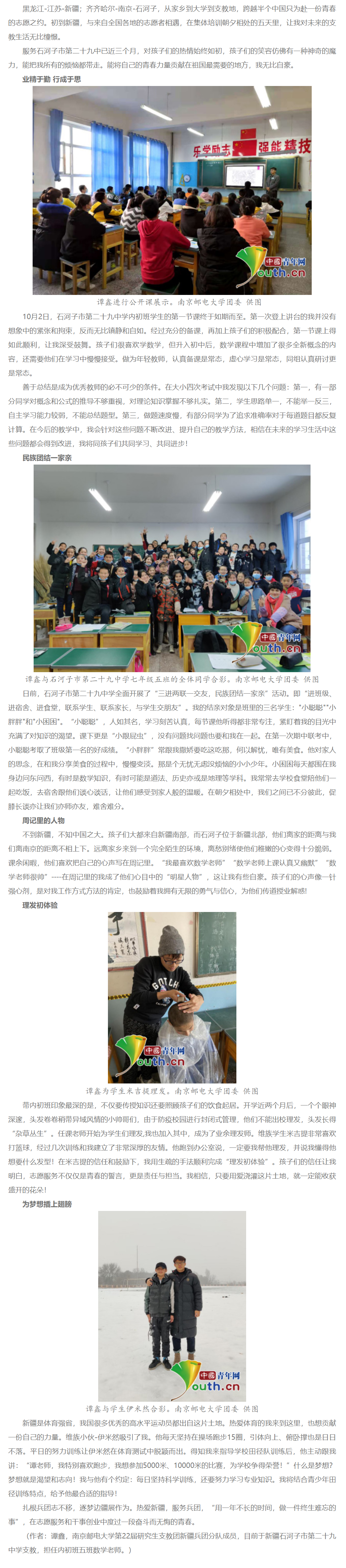 【中國(guó)青年網(wǎng)】支教隨筆:扎根兵團(tuán)志不移 逐夢(mèng)邊疆展作為
