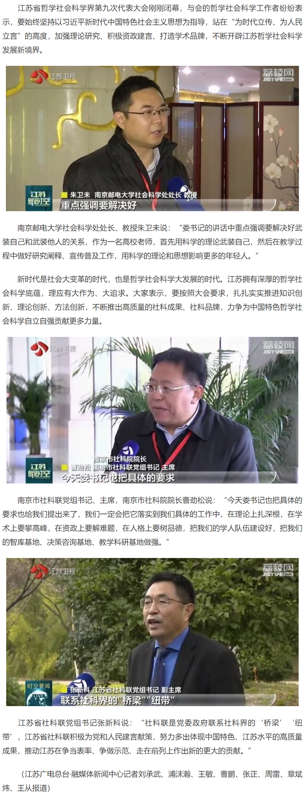 【江蘇衛視】省哲學社會科學界第九次代表大會引起熱烈反響 培根鑄魂 為時代立傳 為人民立言