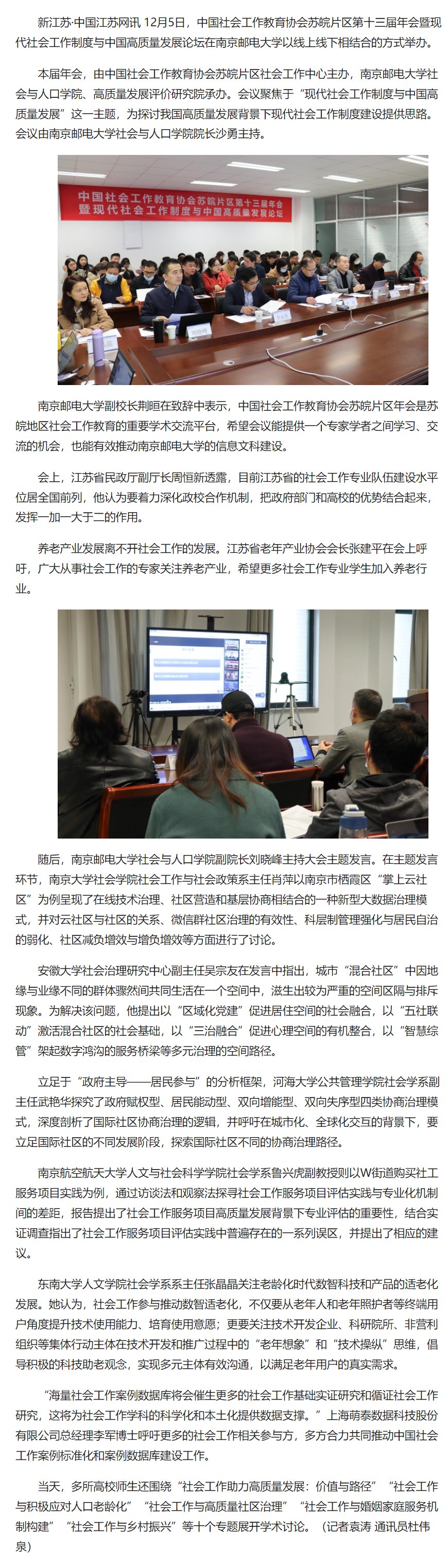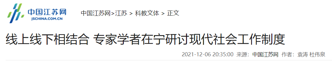 【中國江蘇網】線上線下相結合 專家學者在寧研討現代社會工作制度