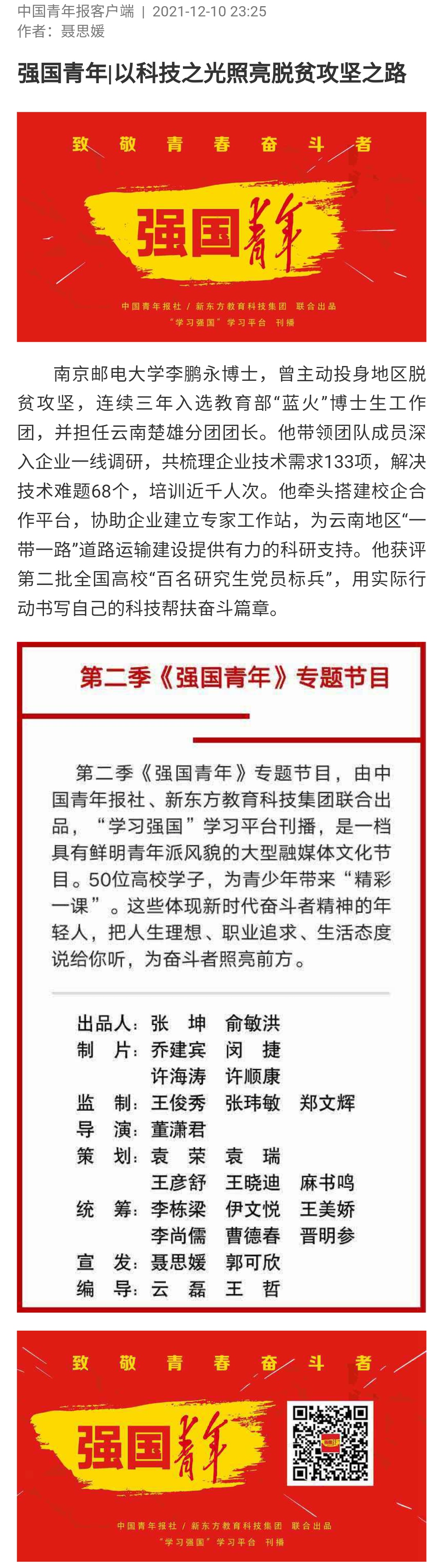 【中國青年報客戶端】強國青年|以科技之光照亮脫貧攻堅之路