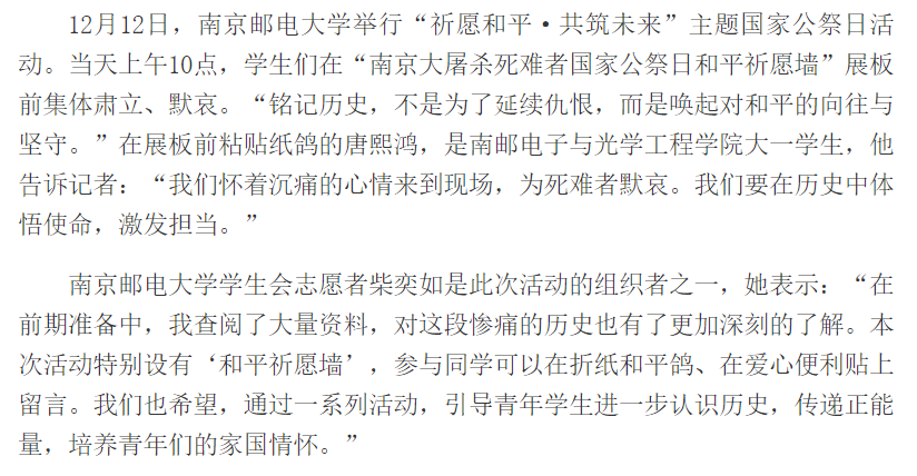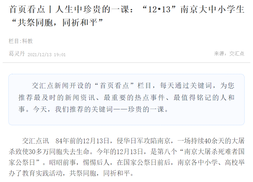 【新華日報客戶端】首頁看點丨人生中珍貴的一課:“12?13”南京大中小學生“共祭同胞,同祈和平”