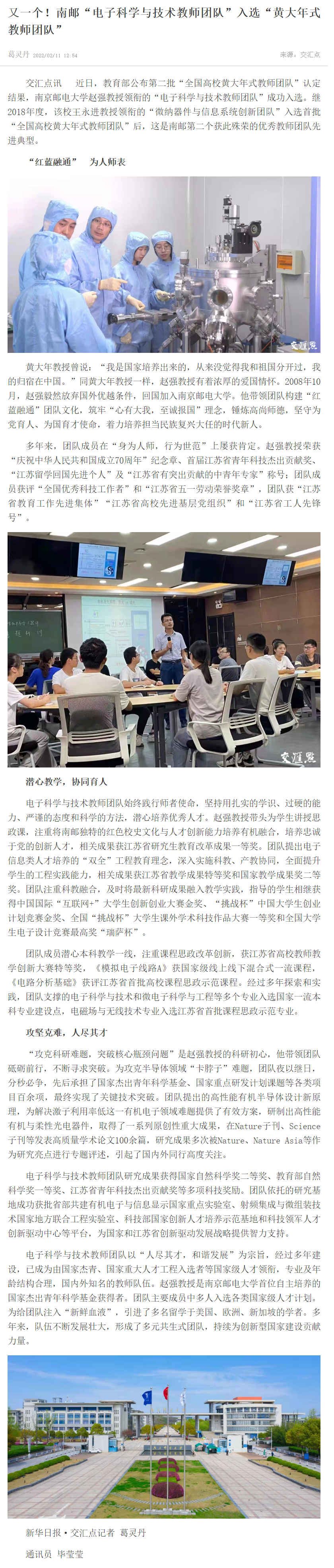 【新華日?qǐng)?bào)客戶端】又一個(gè)!南郵“電子科學(xué)與技術(shù)教師團(tuán)隊(duì)”入選“黃大年式教師團(tuán)隊(duì)”