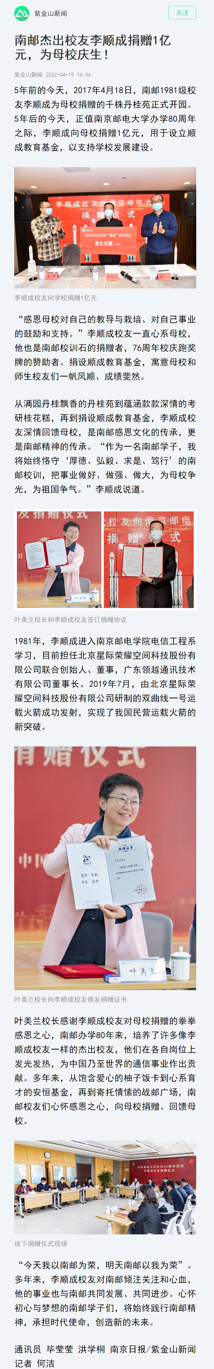 【南京日報(bào)客戶端】南郵杰出校友李順成捐贈(zèng)1億元,為母校慶生!