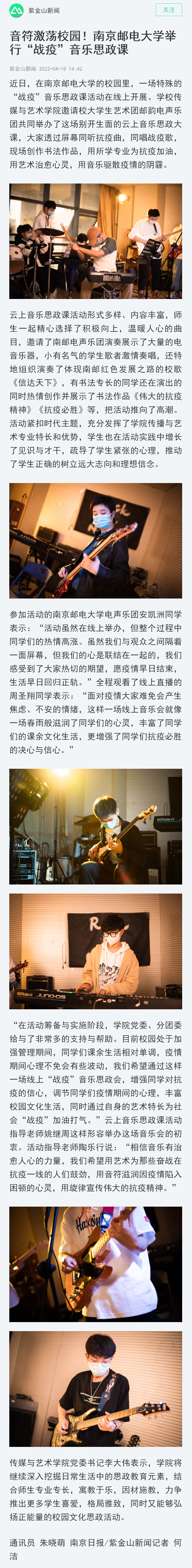 【南京日?qǐng)?bào)客戶端】音符激蕩校園!南京郵電大學(xué)舉行“戰(zhàn)疫”音樂(lè)思政課
