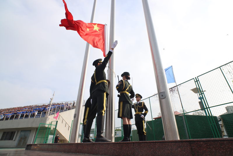 伴隨著雄壯的國歌聲,五星紅旗冉冉升起,拉開了開學典禮的序幕。