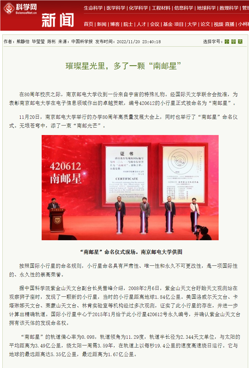 【科學網】 璀璨星光里,多了一顆“南郵星”