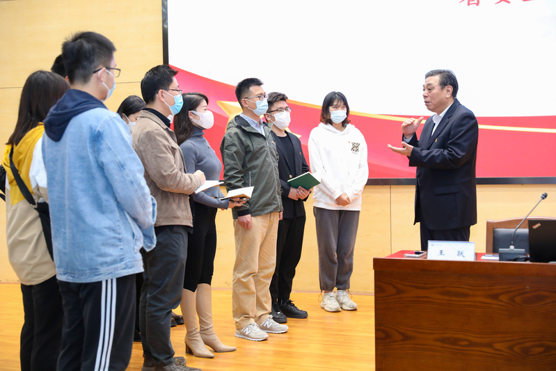 我校思政課教師、輔導員、學生代表就“思政課教師如何在偏理工科類的大學生群體中有效開展‘三進’工作”“高校思政工作者如何才能更好地把馬克思主義思想精髓、中華優秀傳統文化精華,同青年大學生們的共同價值觀念融通起來”“青年學子如何更好地將實現個人價值目標與時代奮進目標結合起來”等話題提問,王躍教授一一答疑解惑,并結合教學工作經驗與學習、宣講黨的二十大精神的心得體會和大家進行了交流分享。他表示,作為思政教師要對理論本身與學生情況有全面地把握,緊扣先進文化、傳統文化、革命文化,發揮教學特長,讓黨的二十大精神進教材、進課堂、進學生頭腦。他勉勵同學們把握當下、埋頭苦干、擔當作為,做有理想、敢擔當、能吃苦、肯奮斗的新時代好青年。
