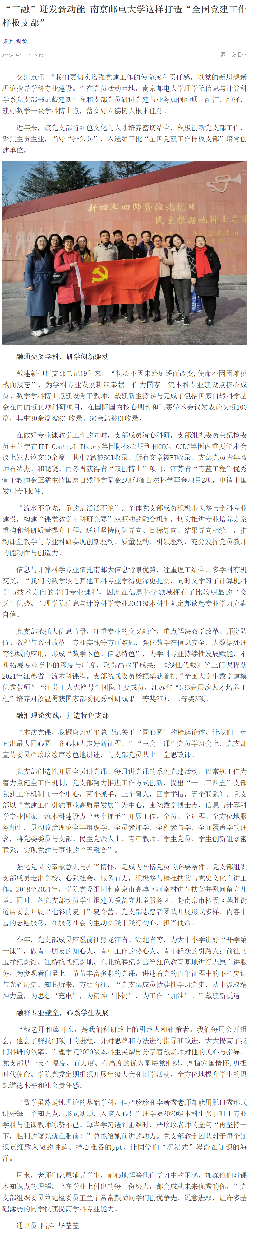 【新華日報客戶端】“三融”迸發新動能 南京郵電大學這樣打造“全國黨建工作樣板支部”