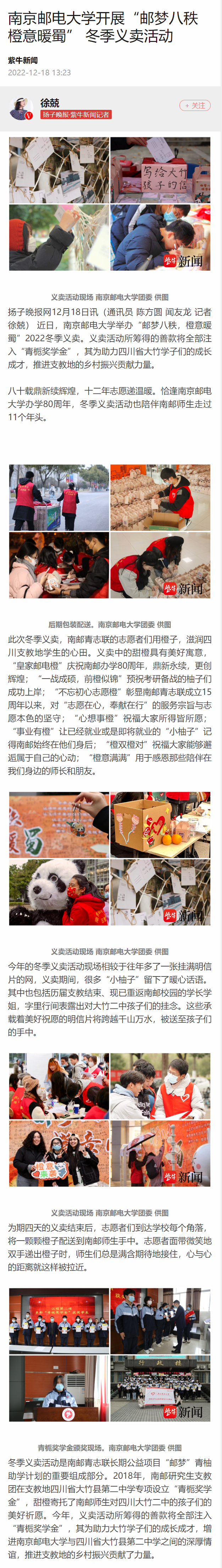 【揚子晚報客戶端】南京郵電大學(xué)開展“郵夢八秩 橙意暖蜀” 冬季義賣活動