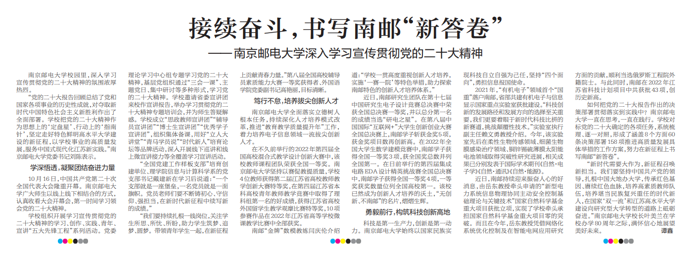 【新華日?qǐng)?bào)】接續(xù)奮斗,書寫南郵“新答卷”
