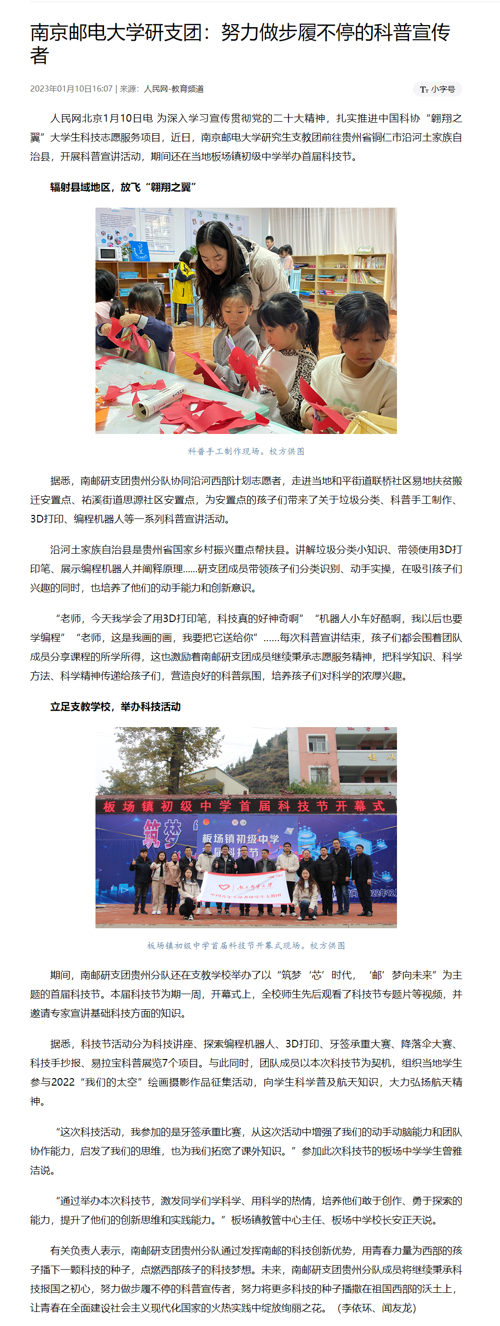 【人民網】南京郵電大學研支團:努力做步履不停的科普宣傳者