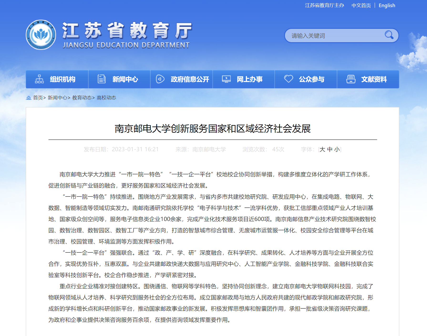 【省教育廳官網】南京郵電大學創新服務國家和區域經濟社會發展
