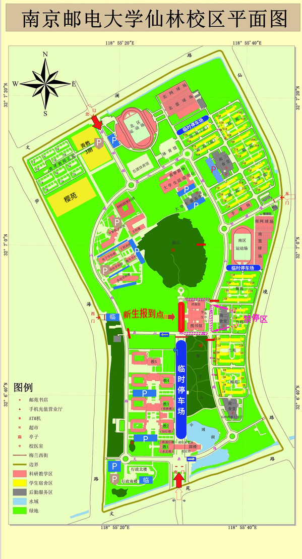 2.新生入校:新生憑錄取通知書進(jìn)出校園,隨行親屬由學(xué)生本人帶入校園;因校區(qū)泊位資源十分有限,送學(xué)車輛不得進(jìn)入校園,可在西門外龍?bào)绰废驴拖仑?,即停即走。送學(xué)車輛如有停放需求,可自行前往龍?bào)绰沸iT對(duì)面的南京市情侶園停車場(chǎng)(社會(huì)收費(fèi)停車場(chǎng))。