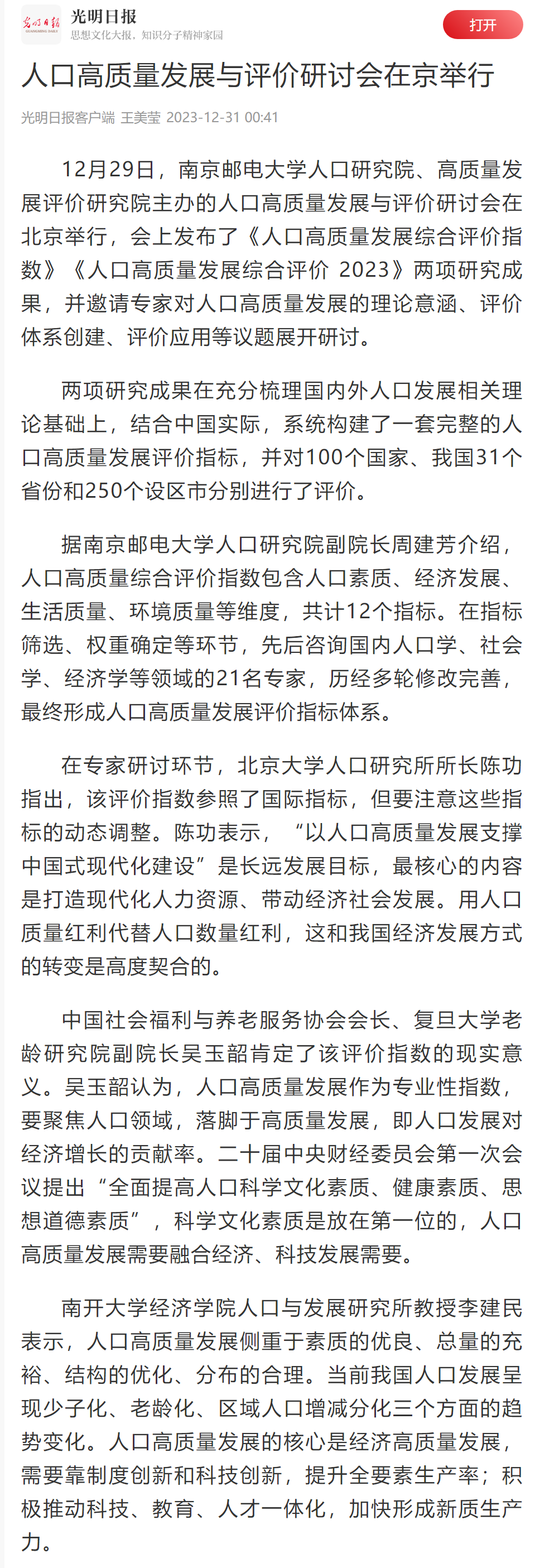 【光明日?qǐng)?bào)客戶端】人口高質(zhì)量發(fā)展與評(píng)價(jià)研討會(huì)在京舉行