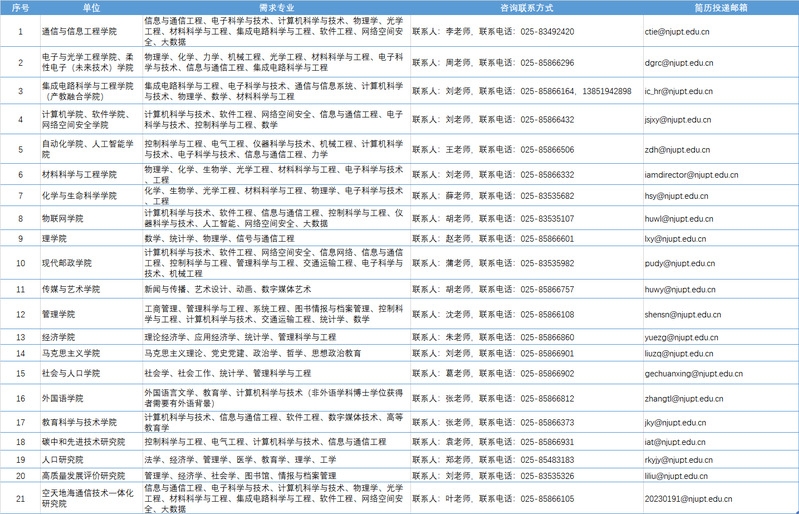 申請人請將個人簡歷發送至各學院(附后),并抄送至rcb@njupt.edu.cn,郵件主題請標注為“優青(海外)申請”,我校將對申請人資格進行審核。符合條件的申請人,按照項目指南要求,與我校簽訂工作合同或者意向性協議,我校將派專人指導申請人開展后續工作。