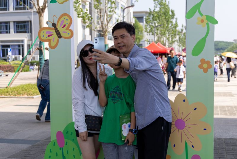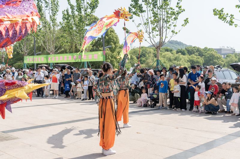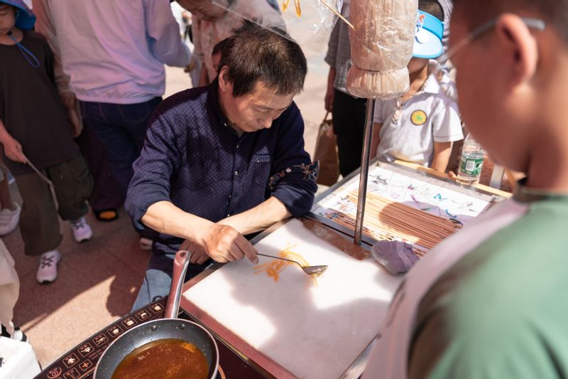 在糖畫制作現場,傳統藝人手把手指導設計和制作糖畫,小朋友們將腦海的構圖,變成現實中的糖畫,又化作舌尖的美味。在面部彩繪現場,小朋友們排成長龍,選擇心儀的圖案,大膽接受彩繪,興奮地與父母合影留念。在留學生展臺,來自摩洛哥、孟加拉等國的留學生穿戴各國服飾,伴隨曼妙音樂翩翩起舞,小朋友們認真地揣摩舞步,感受他國文化。