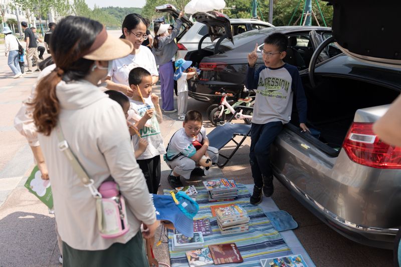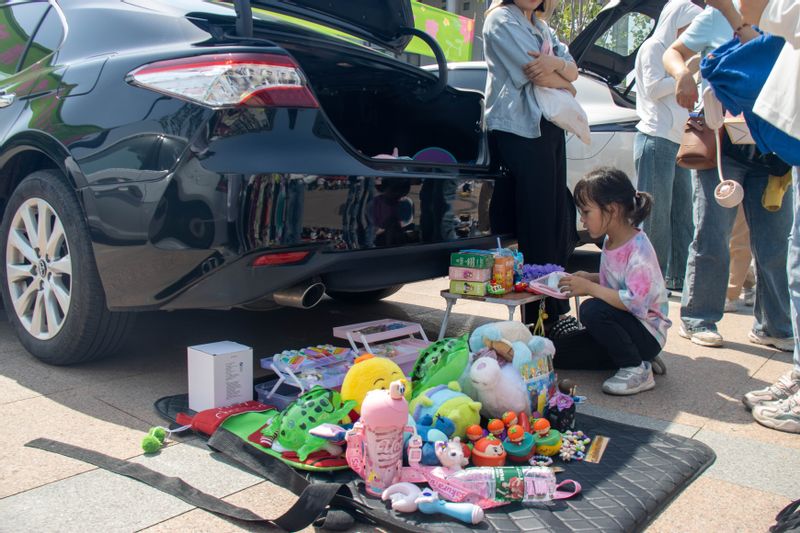 幼兒園老師準備了豐富的親子活動,父子齊上陣、母女同心圓,一起玩彩虹傘、做益智題,加強了親子溝通,拉近了家校之間的距離。全場播放著歡快的音樂,學生志愿者們吹起氣球,捏成不同的造型,吸引了小朋友的圍觀和排隊。親子后備箱集市上打開一個個小商鋪,圖書、玩具種類繁多,小朋友們在攤位上介紹玩具、互換商品,倡導綠色低碳生活,收獲了快樂和友誼。