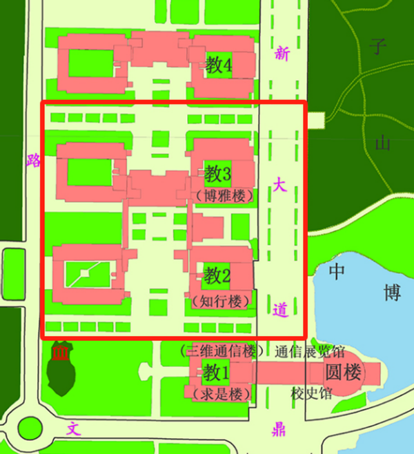 教二、教三樓宇及周邊路面(含鼎新大道),見下圖。