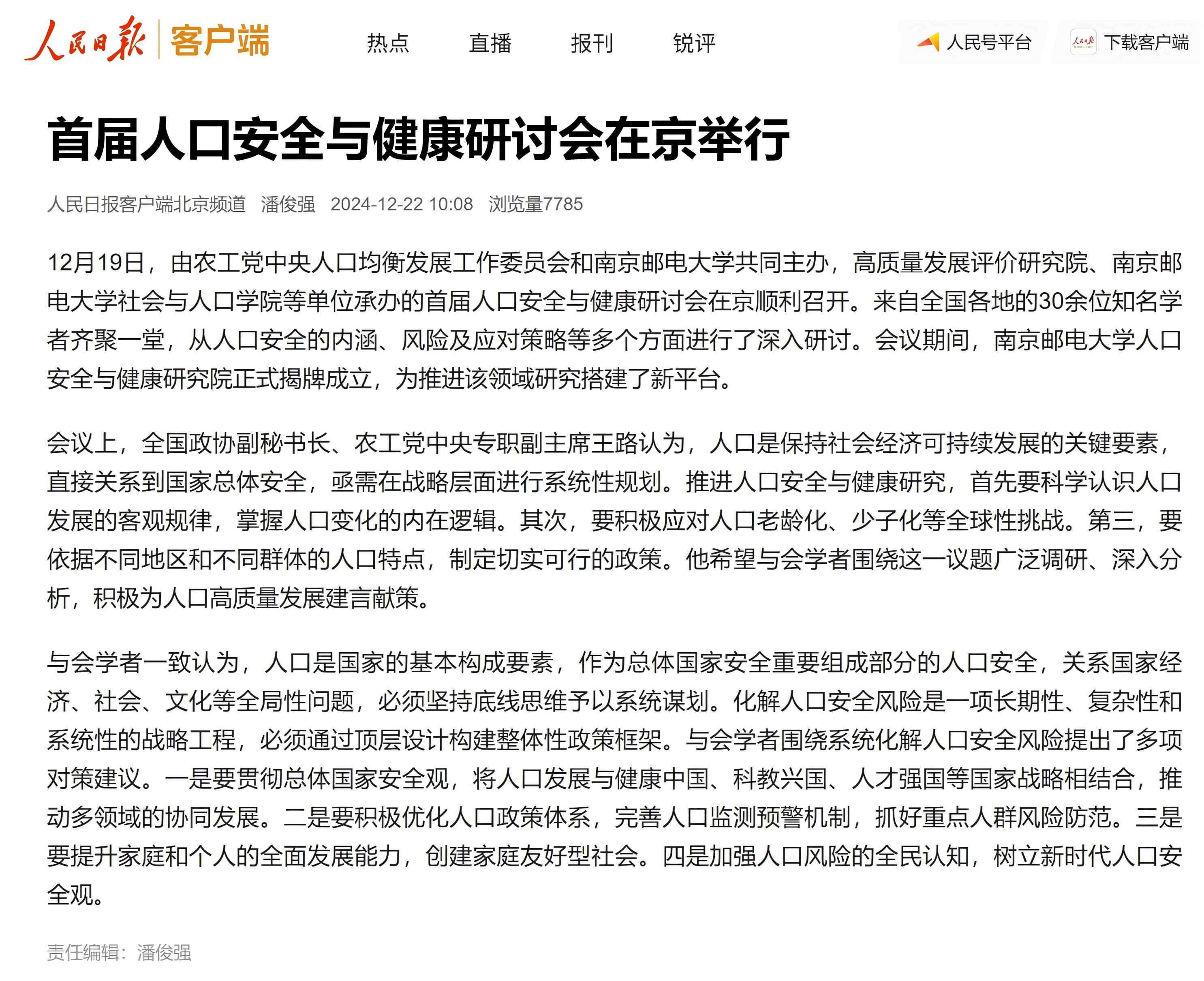 【人民日報客戶端】首屆人口安全與健康研討會在京舉行