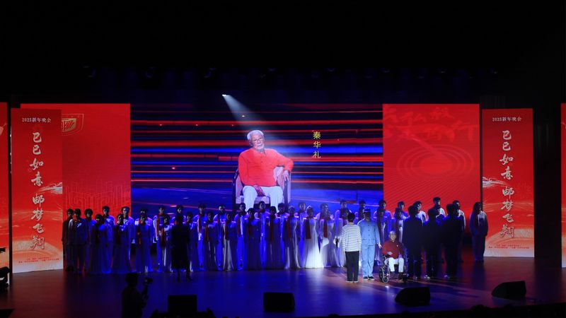 新年晚會以鏗鏘昂揚的新派龍獅秀《龍騰華夏》開場,氣勢磅礴的交響樂《激情燃燒的歲月》激發了學子的家國情懷,原創朗誦《這是一張怎樣的臉》歌頌了校友徐六保將青春與熱血奉獻給祖國邊防事業的感人事跡,原創合唱《青春燃燒的火種》等作品展現了學子們青春似火的蓬勃力量,舞蹈《石榴花開》勾勒出56個民族像石榴籽般凝心聚力、團結友愛的美好畫卷,搖滾樂隊帶來的《像夢一樣自由》等歌曲展現了青年們在充滿詩意與自由的狂野中努力奔跑的模樣。